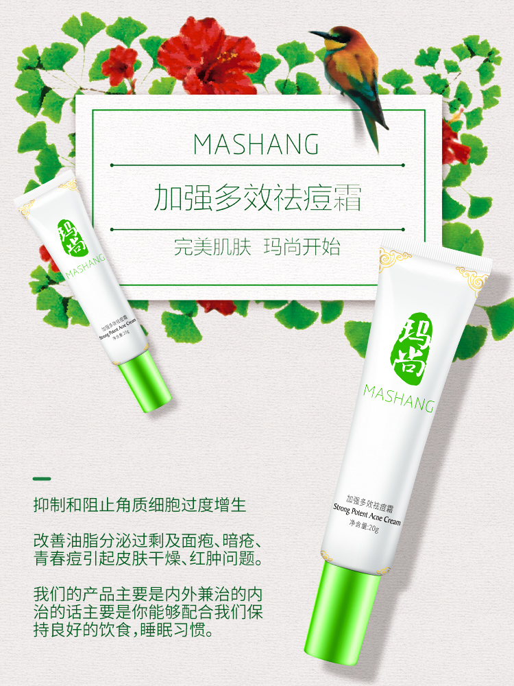 6、玛尚祛痘霜 将玛尚祛痘霜厚厚在痘痘上抹上一层,可迅速收干脓包性痘痘,使其变小、愈合、脱落。并防止痘印产生。如果只是几个红痘痘,当天抹上,第二天起来就可以看到痘痘扁了,这感觉真的很赞呀!如果是痘痘比较多的朋友,那就要按照疗程治疗喔~ 当然皮肤问题不是一天形成的!最好的祛痘方法就是预防,千万不要每次都到了长痘才手忙脚乱。没什么痘痘是玛尚祛痘产品解决不了的,如果有,那就再加一套!如何一天之内消除痘痘?这个有点难,还是安分点慢慢来吧! |