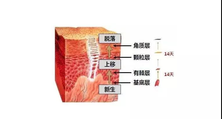 表皮层里面没有血管,所有的营养和氧气都需要从真皮层慢慢渗透过来,所以真皮层往表皮层长了很多“乳突”—— 为表皮层提供养分创造了条件,而随着年龄增加,这些“乳突”慢慢变平,表皮层得不到那么多的营养,就开始老化。 表皮层最重要的任务,是形成一层坚固的隔水层,让皮肤内部的水分跑不出去,让外面的有害物质进不来,又可分为4个小层来做这些工作。