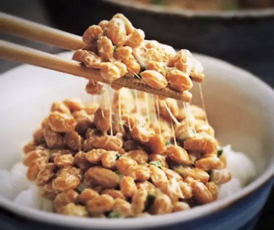 纳豆的粗提物中含有丰富的卵磷脂、不饱和脂肪酸、维生素E等抗氧化成分,可有效降低血脂、胆固醇及清除脑组织细胞中过氧化质色素,调节皮肤细胞和皮肤表面水和脂肪的平衡,促进血液循环,改善皮肤弹性,令皮肤光洁柔软,达到延缓衰老之功效。